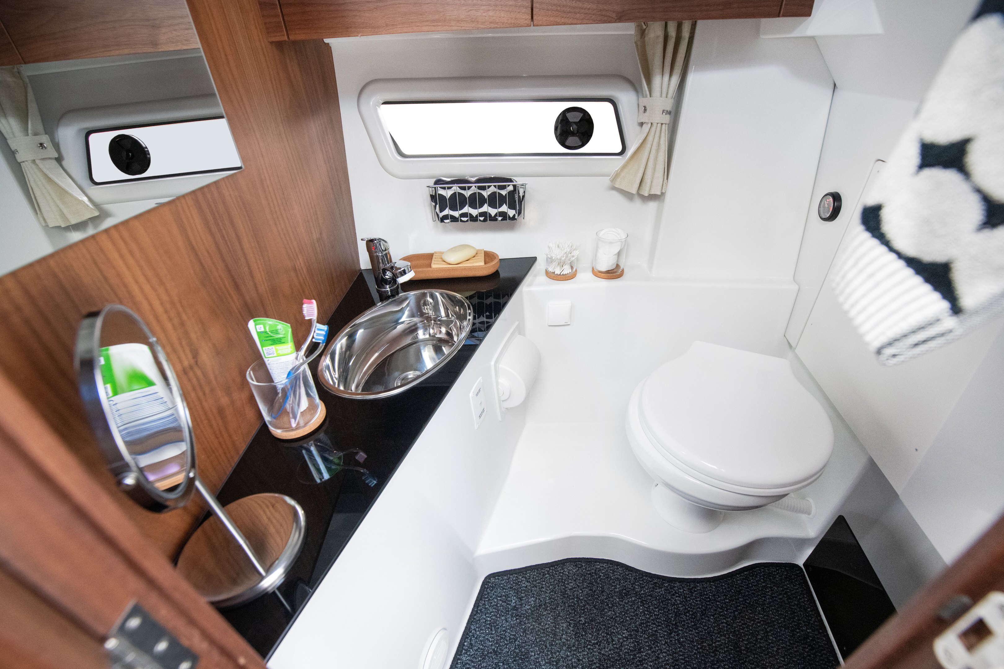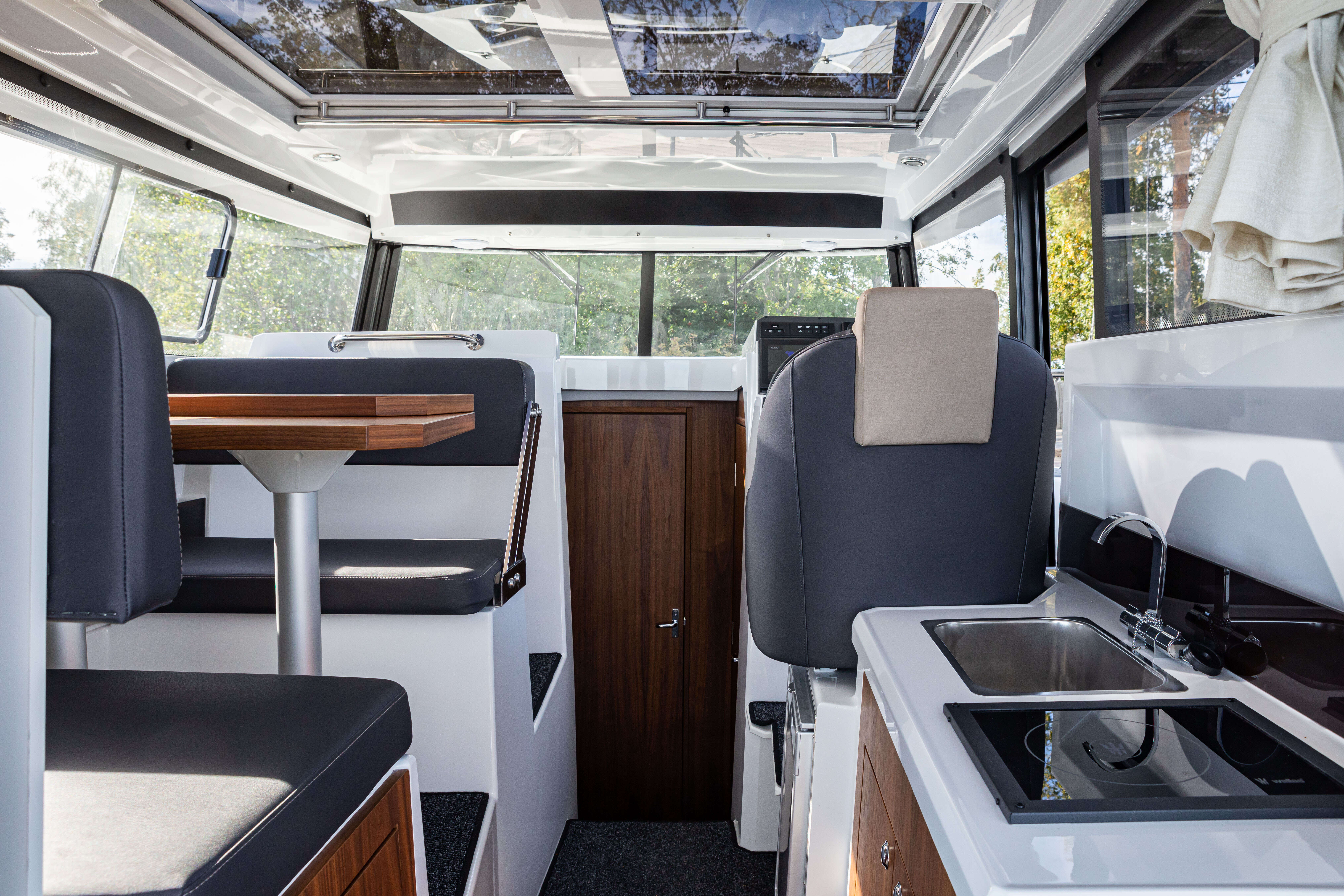 Pilot 8 paadi ümberdisainitud ja pikendatud katus pakub ahtritekis viibijatele kaitset nii vihma kui ka päikese eest. Avar kabiin on varustatud suure, kogu laiuses avatava katuseluugiga, neljale inimesele mõeldud söögilauaga ning mahuka kööginurgaga, mis tagab mugavuse ka pikematel sõitudel. Vöörikajutis on rohkelt panipaiku, suur eraldi tualettruum ning magamiskohad kuni neljale täiskasvanule.